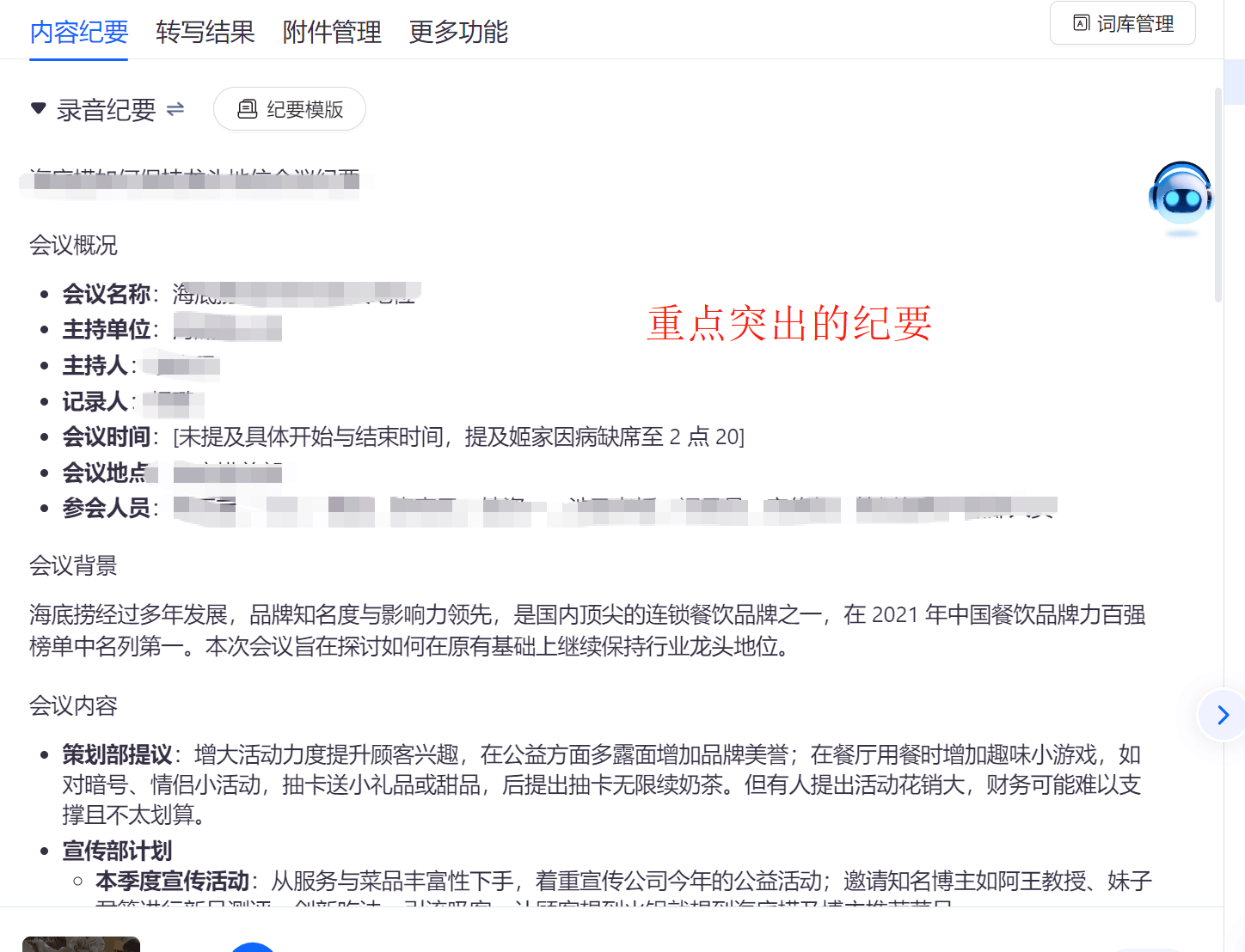 讯飞听见是合适的选择;同时它支撑及时标识表记标帜沉点、智能提炼问答内容,