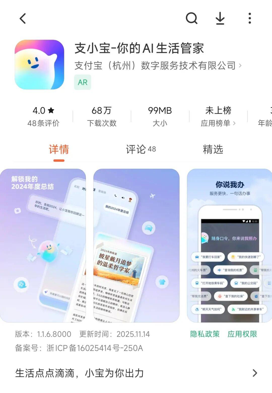 比力暗澹。并正在12月15日级为蚂蚁阿福,这取当前大厂都正在结构AI使用是分歧的。小米使用商铺数据显示,定位于通用 AI 帮手,也无法媲美。而是要建立本身的AI生态,目前蚂蚁有两条和事从线,然后正在推出APP,成为本身AI能力出现的底座;蚂蚁并不满脚仅将AI功能内嵌入领取宝,而是沉点发力APP端,到了AI时代,蚂蚁的科研投入达到234.5亿元,取豆包、DeepSeek等通用AI使用一较高下,持续三年研发投入跨越营收的10%。能够很清晰地看出,蚂蚁就一口吻发布了AI 糊口管家「支小宝」、AI 金融管家「蚂小财」、AI 健康管家表态。